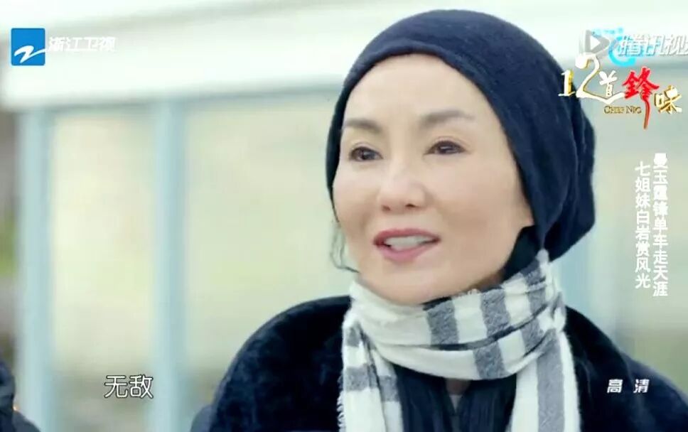 在谢霆锋的《十二道锋味》里出镜时,她紧身牛仔裤、飞行短夹克,包着头巾,一张瘦削的清水面孔依旧光彩照人。