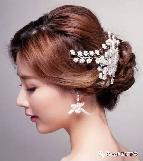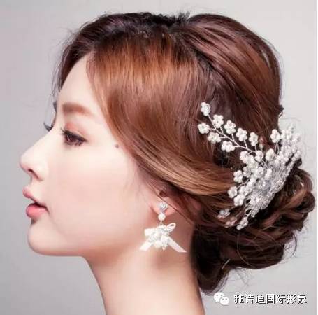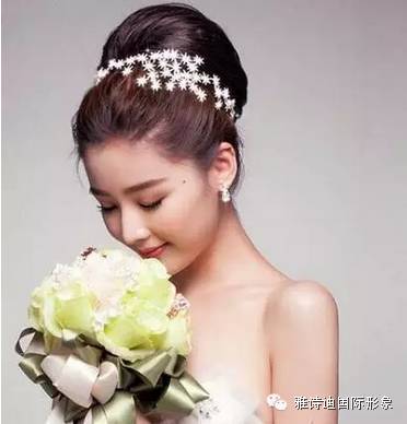 发型三:把头发高高挽起,形成较大的花苞头,这一款韩式新娘发型看起来很简单,但却很有味道 ,特别是发间那如满天星星的发饰,起到点睛作用,美到让人移不开眼睛。