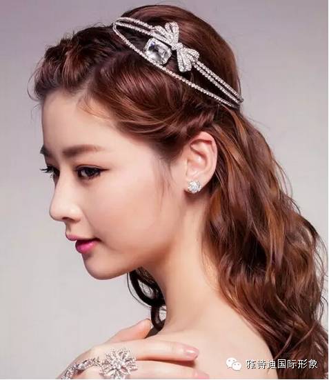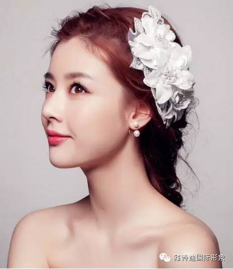 发型五:现在很多新娘子都喜欢在结婚当天选择披发,韩式的新娘发型也有很多这样的发型,从两侧的头发简单地往后别起来,其他的头发披散下来,显得很自然、舒适,大秀新娘的魅力。