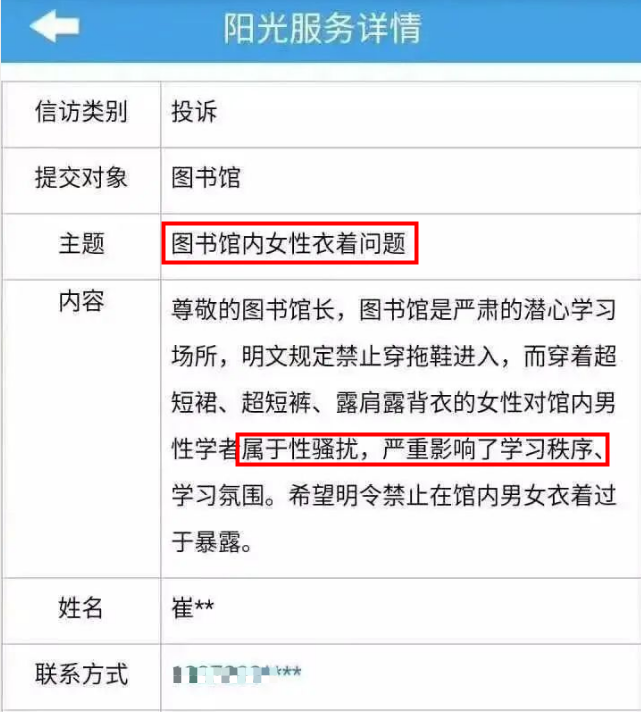 有人向学校举报,该女生穿着短裙进入图书馆,严重影响自己学习,并且还造成性骚扰。
