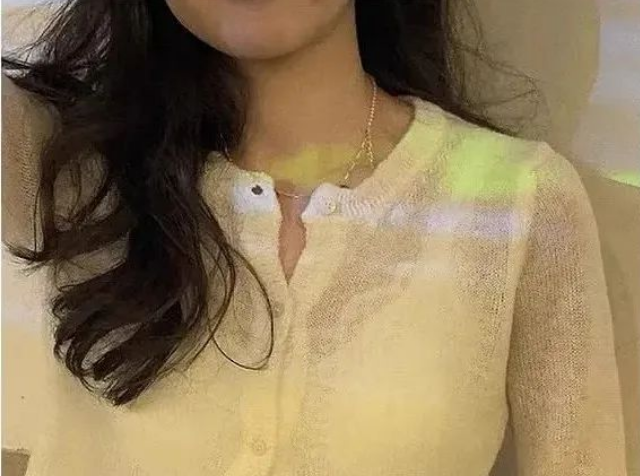 上班之前,她精心打扮了一番,因为天气热,便穿着一件小吊带背心,外搭薄纱外套。