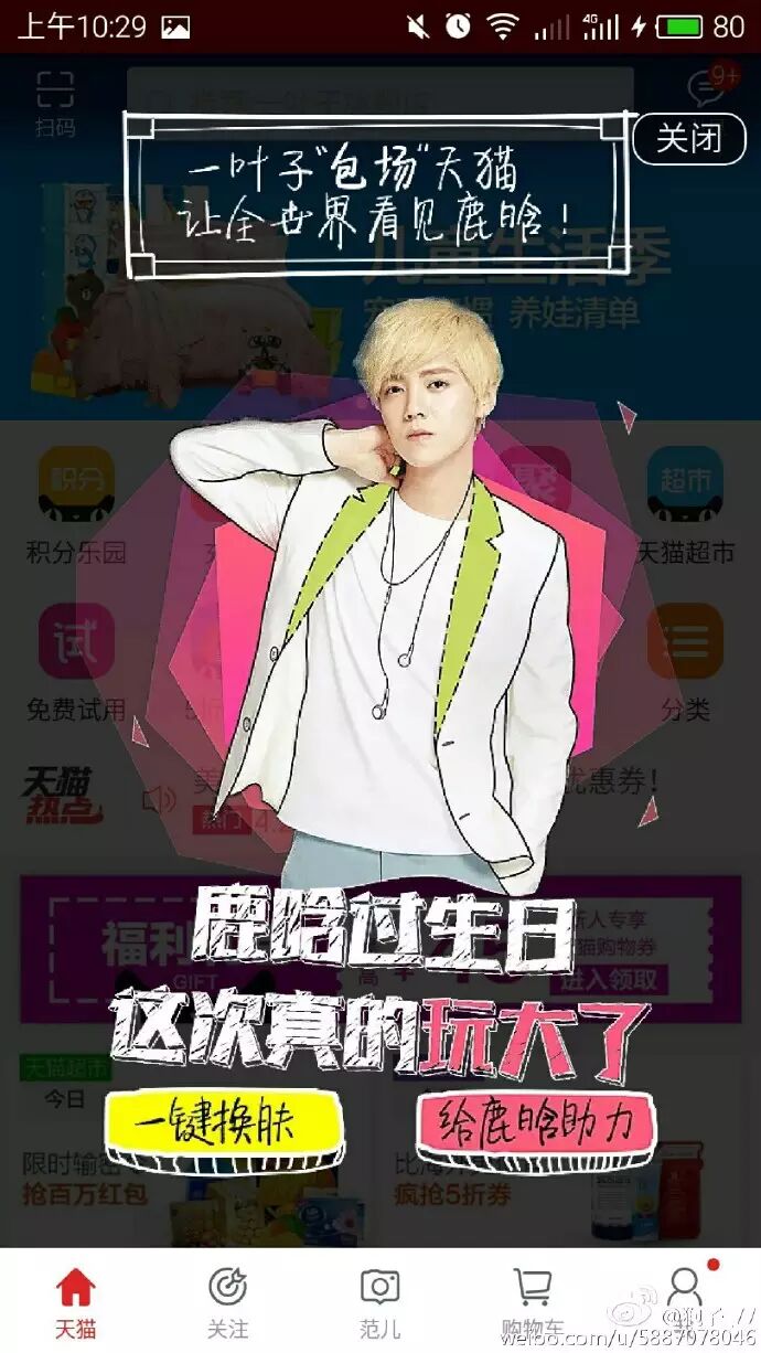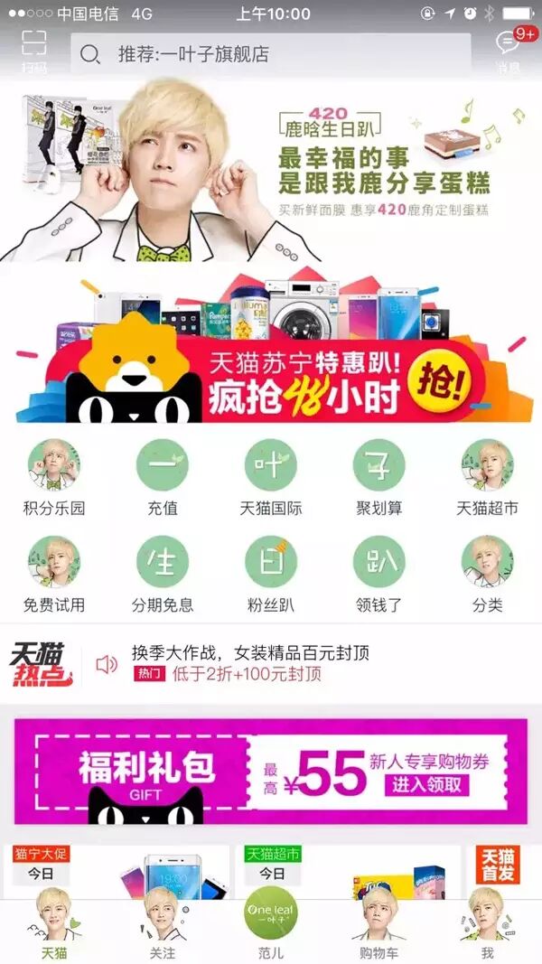 长达10天的线上广告露出,誓为鹿晗攻占全天猫!