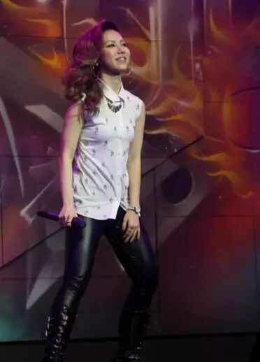 邓紫棋用实力告诉你,桃红色的皮裤还可以这么玩!诺,这也是一种风格,小编我觉得还是不错的。