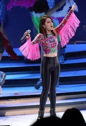 这露脐小花褂,确实是小蛮腰,但这腿,此处省略一些字,省的邓紫棋的粉说小编我黑人!。