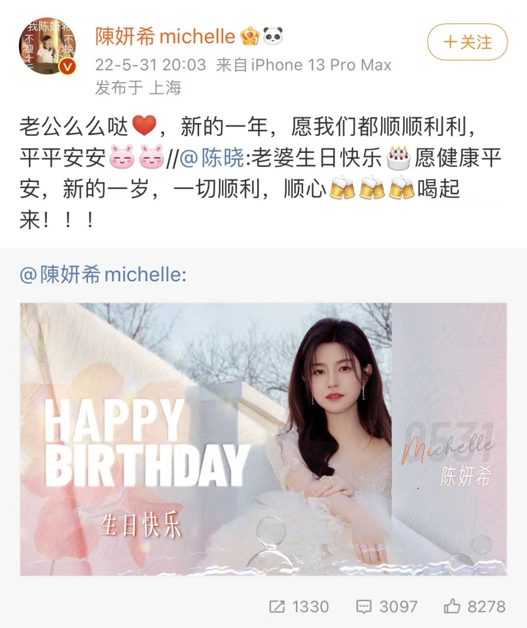 不久前,双陈还在微博上借庆生而大方秀恩爱,但仍有不少人冷眼等“离”。