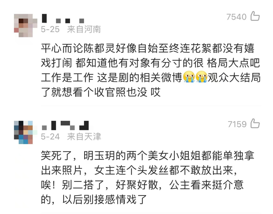 告别微博里没带上女主角陈都灵的照片,@ 错了导演的微博,漏掉了女二号。这也就算了,剧粉偏偏还发现其正牌女友何超莲在评论区“抢沙发”,一时间微博广场上又是一阵乌烟瘴气。