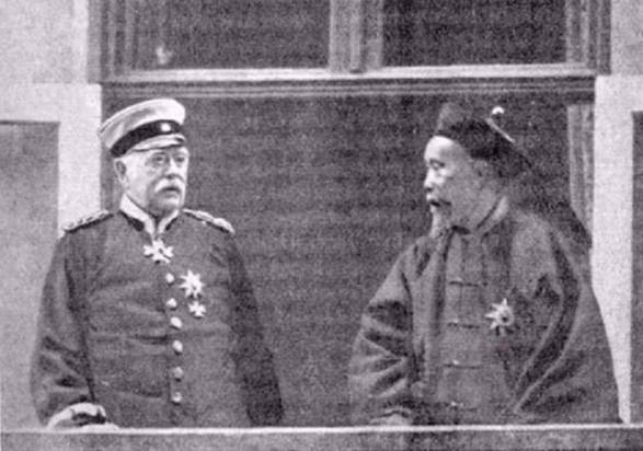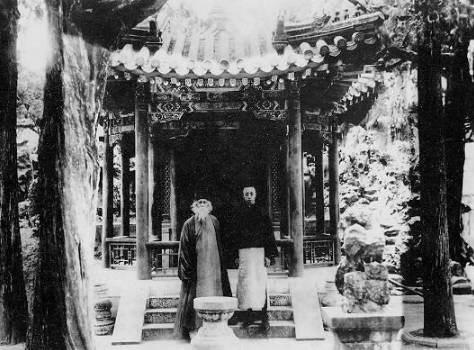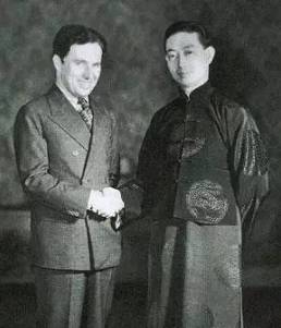 历史老照片:清朝末代皇帝爱新觉罗·溥仪与印度著名诗人泰戈尔的合影。