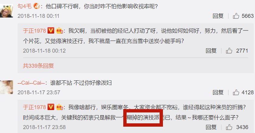 虽然于正遣词难免运用了夸张手法,但既然已经签约走流程了又临时反悔,偏偏还挑中三两天开机的时候,搁谁也火大。