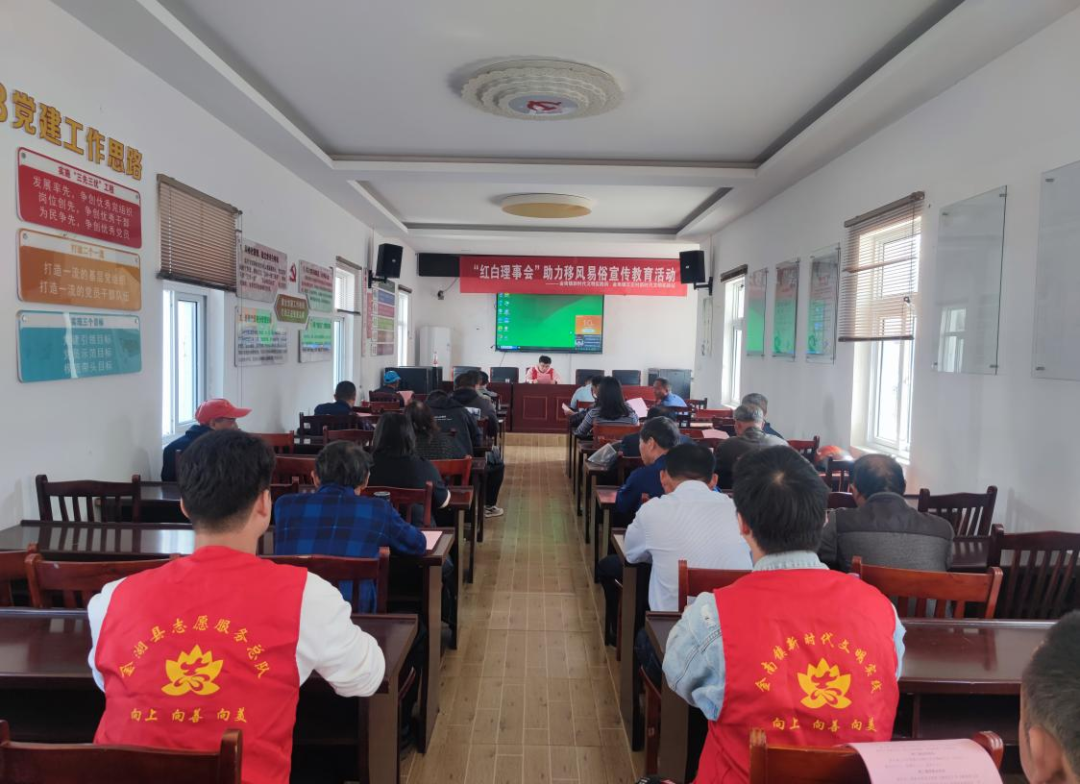 活动中,新时代文明实践所志愿者为到场的群众和党员干部分发了红白理事会章程和移风易俗承诺书,并向村民详细讲解本村《红白理事会》的具体内容、移风易俗相关知识,呼吁村民践行章程,倡导婚事新办、丧事简办,杜绝封建迷信、铺张浪费、盲目攀比等不良风气。