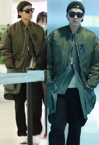 李易峰身穿junn.j2015秋冬男士系列军绿色棒球棉服现身机场。乍一看,还在想喋喋穿的一长一短是个什么鬼啊,外面是飞行员夹克,里面仿佛还套着一件大衣其实细看这件军绿色夹克外套很眼熟,前不久鹿晗小盆友也穿过类似款,也反戴着棒球帽,只想说颜值高就是任性。喋喋下面还配了条条纹西裤,整身造型够潮范儿!