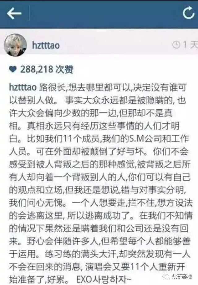 还有就是当初exo里面的天朝四子,最初,吴亦凡决定离开的时候,黄子韬闹得很凶,说吴亦凡是叛徒,说好一起走下去,吴亦凡离开了团队。