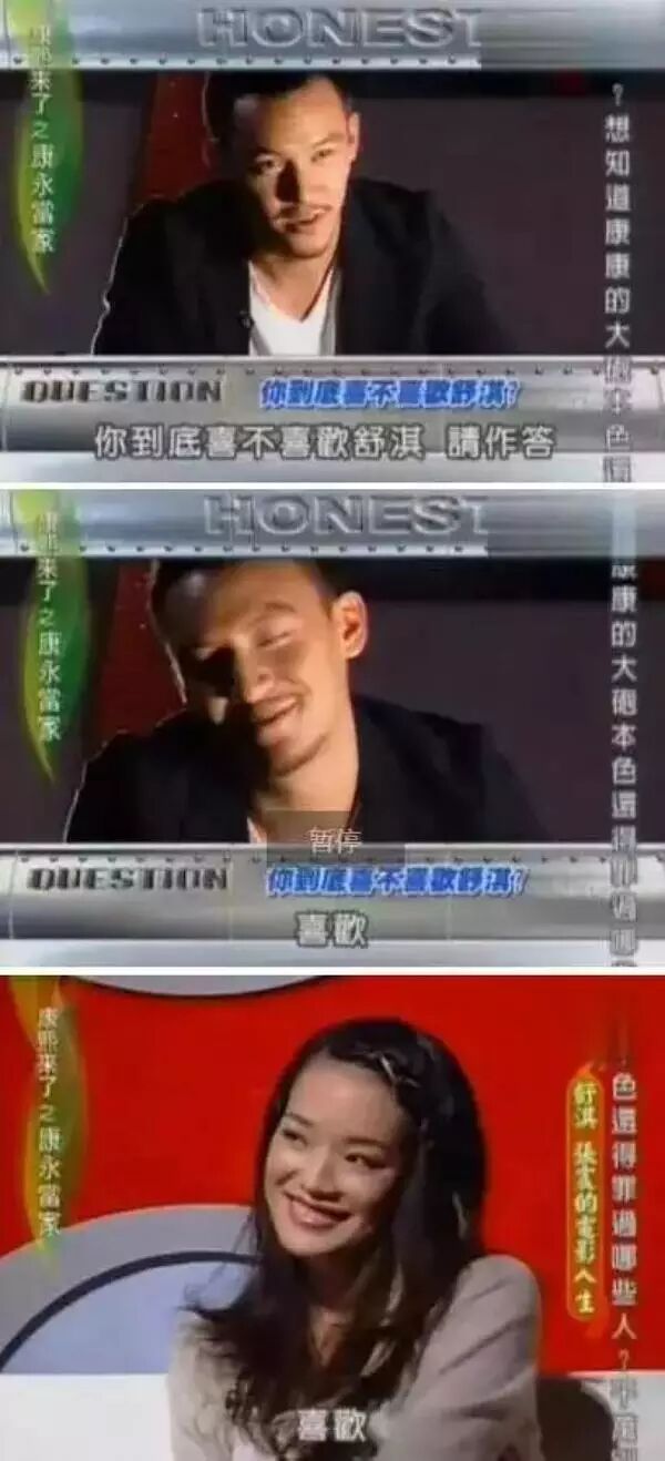 和张震那段完美的爱情,尤其在上《康熙来了》那一期,张震在蔡康永的怂恿下说喜欢舒淇,坐在对面的舒淇听了笑靥如花,至今这期节目的截图还在朋友圈广为流传流传,最终因张父一句“舒淇不会是张震的另一半”而告终。
