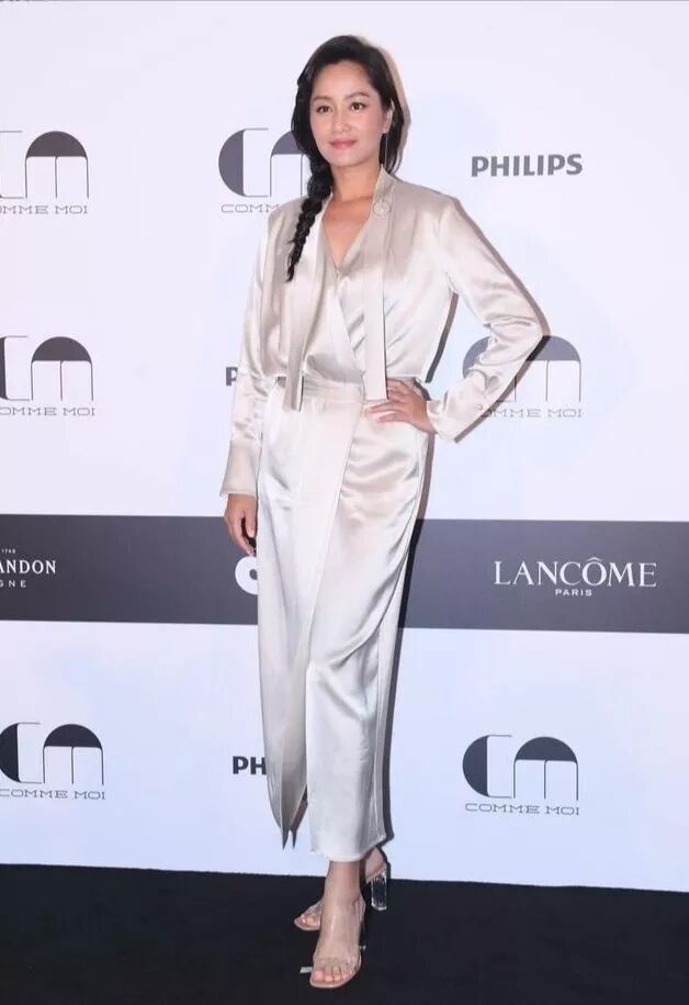 但是呢,瞿颖站在那里那个气场一下子就出来了,长得很高,所以随便打扮一下就很有气质了呀。这样的黑色的衣服也非常的修身了,搭配一双长靴还是很好看的呢,非常的显瘦。