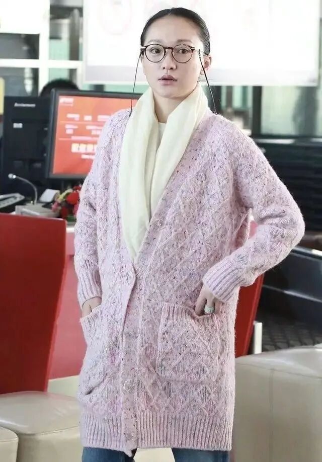 周迅现在不管怎么打扮自己都显得特别的老气了呢,这样的一件粉色针织衫穿起来显得人看着更像是一个老年人一样了。因为她现在脸部状态大不如从前了,苍老的非常的明显也没了气场。