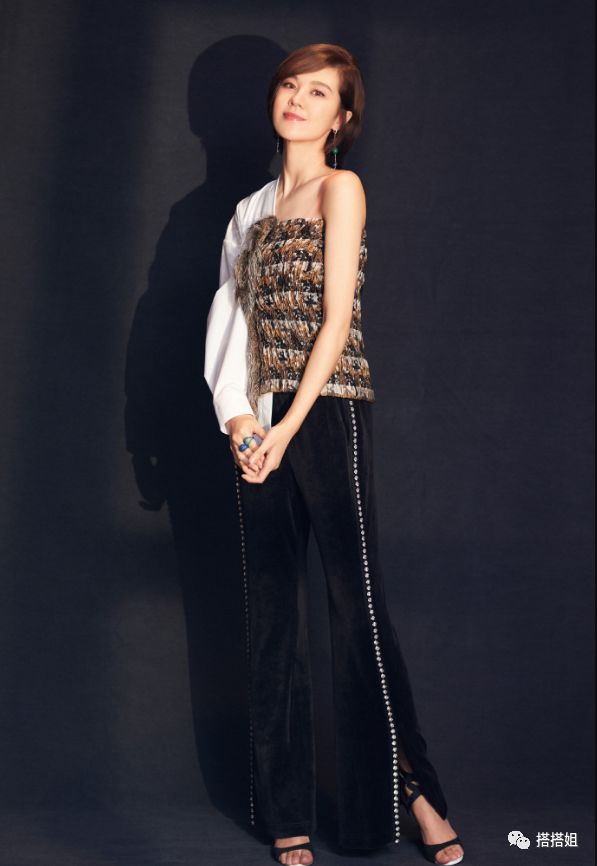 这阔腿裤真是显得郁可唯又瘦又高,腿长更是2米既视感,精致的耳环搭配美艳的锁骨,十分迷人。
