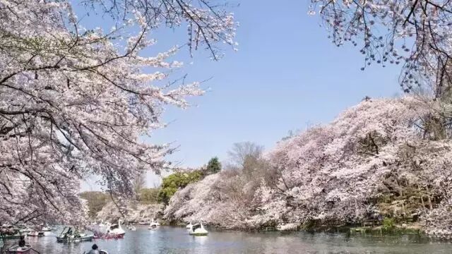 一到春天,池边数百株樱花纷纷盛放。飘扬的樱花、洒落的花瓣,把井之头池映成一片粉色湖泊,公园也因此被被为日本赏樱名所100选。