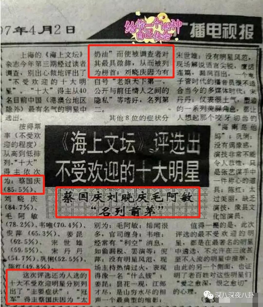 有人觉得,也许蔡老师只是在保护小辈,毕竟他自己曾经就因为“太过奶油小生”,而被评为最不受欢迎的明星榜榜首,