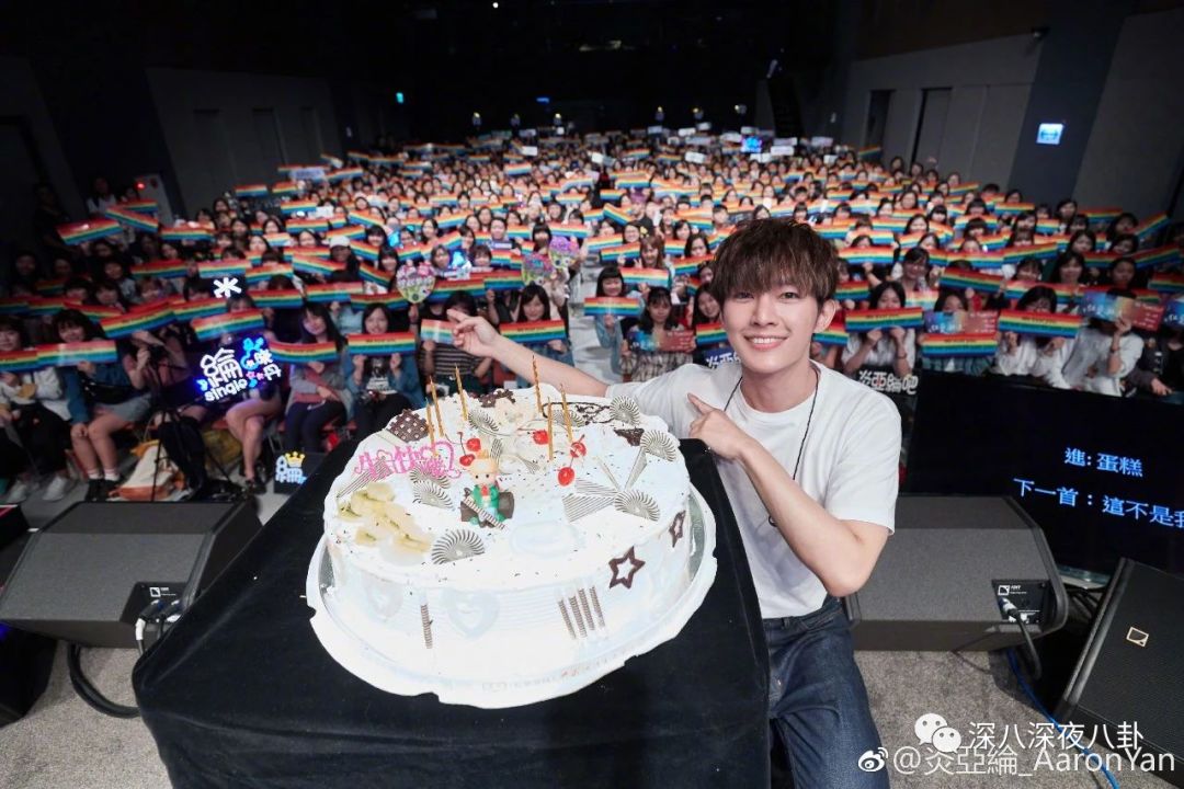 粉丝们其实也很懂很支持,绯闻事件后炎亚纶举办生日会,粉丝应援齐刷刷为他举起彩虹旗,
