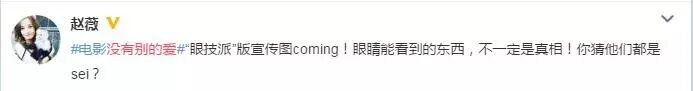 今天(4月25日)下午,赵薇发布一条微博:“眼睛能看到的东西,不一定是真相!你猜他们都是sei?”并配上了八双人物眼睛的“眼技派”版宣传图照片,从而曝光了她个人第二部导演作品《没有别的爱》的八位演员阵容。