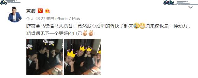 在落选金马奖之后,黄渤完全没有失落沮丧的心情。