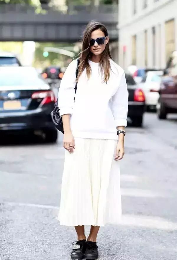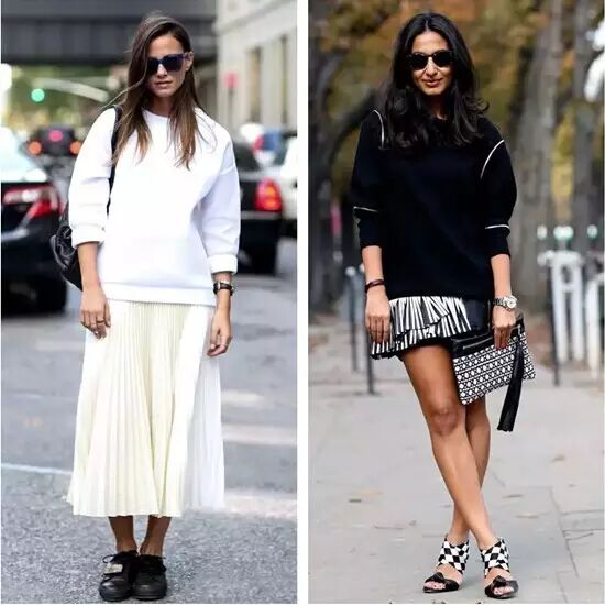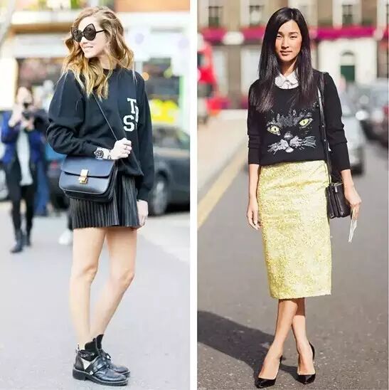 而首先我们要说到的就是如今最时髦的穿法——卫衣+半裙!