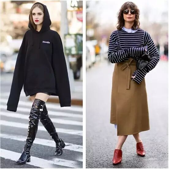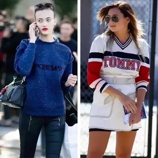 和超长袖款有着异曲同工之妙的Oversize款卫衣也是今年不容错过的流行款哦!作为永远的时髦元素,如果在Oversize款的卫衣里搭配一条短裙,隐约露出美美的裙边,更是给造型加了一些小小性感!