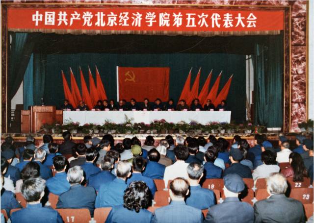 1986年4月27日至28日,北京经济学院召开第五次党员代表大会,这是1974年北京经济学院恢复重建后的第一次党代会,距离第四届党员大会已有21年。全校党员904名,出席大会的代表118名,列席代表28名,特邀代表4名。