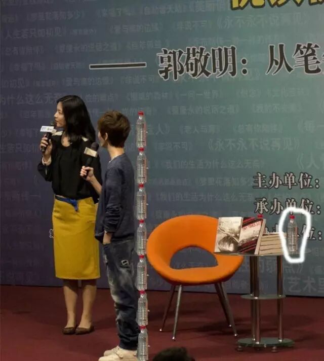 也有热心的网友做了如↓的对比图,别人有九头身,郭敬明有7瓶矿泉水瓶,随意感受下。