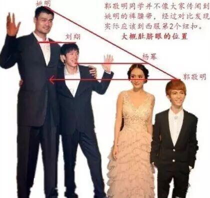 基本上只要有郭敬明出场的地方,身高永远是一个被吐槽的槽点,还经常被网友们拿来跟姚明做对比,增高鞋垫都挽救不了,只能给他一个梯子了。目前看到的几种说法,有147cm,153cm,和157cm。