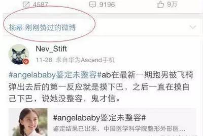 而且最神奇的是杨幂曾点赞过一条关于质疑baby整容的微博,言外之意,反正我不信。