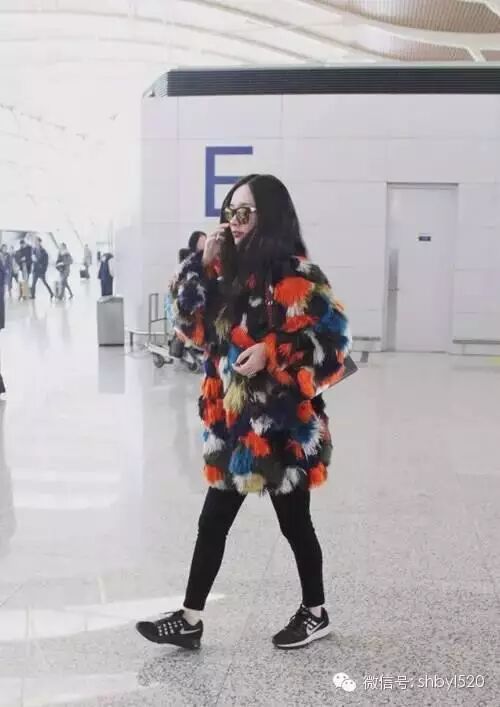 近日,霍思燕身穿彩色皮草独自现身上海机场,前往美国参加纽约时装周。