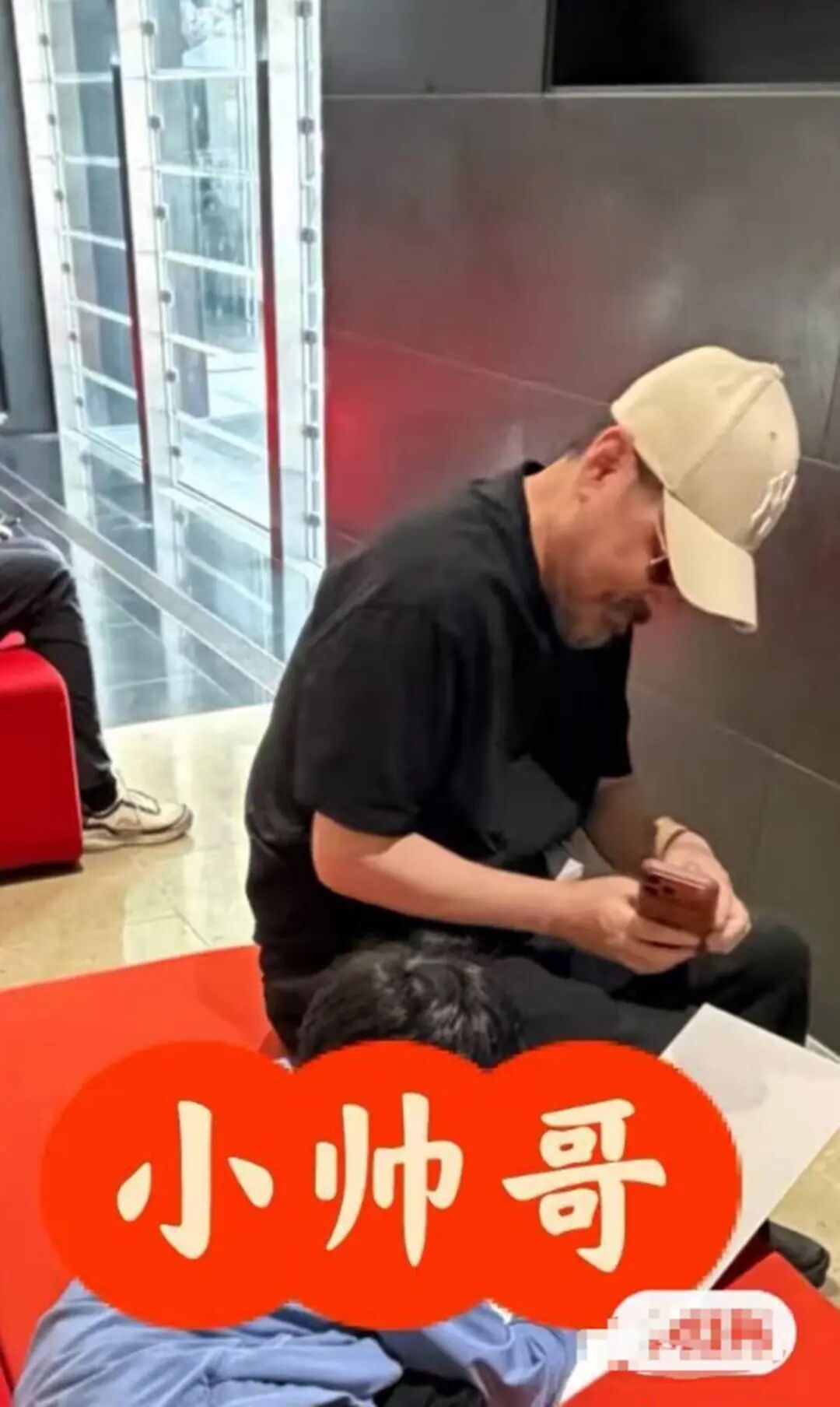 合照里的陈建斌,头上戴着米色棒球帽,脸上架着金属框墨镜,脸上的花白胡须特别清晰。路人无滤镜的镜头下,他丝毫没有荧幕上的气场,整个人看着并不年轻,甚至比 55 岁的实际年龄还要苍老几分。