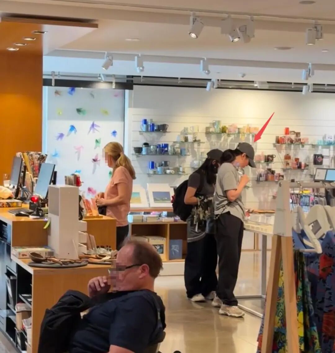 逛完美术馆之后,一家人并没有着急离开。蒋勤勤独自走到纪念品店里,为家人和朋友挑选伴手礼,细心又贴心。陈建斌则带着两个孩子,安安静静在店门口等候,分工十分自然。