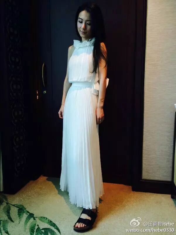 一袭白色流苏裙,优雅高贵很有“仙味”,那种飘逸灵动的感觉非常舒服,洁白无瑕宛如水中花,这双黑色平底鞋也很抢眼呢。