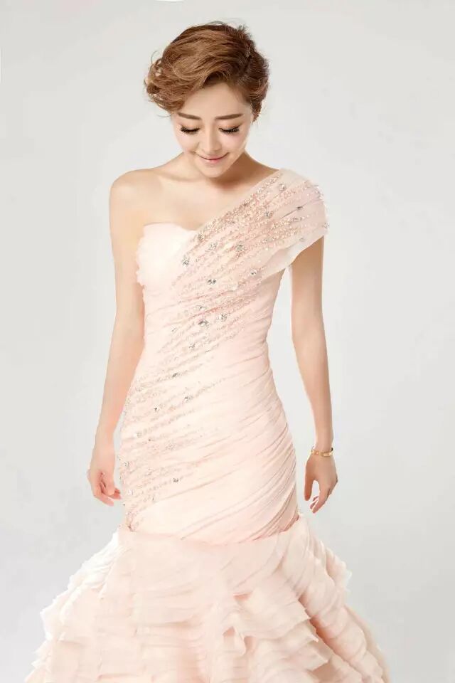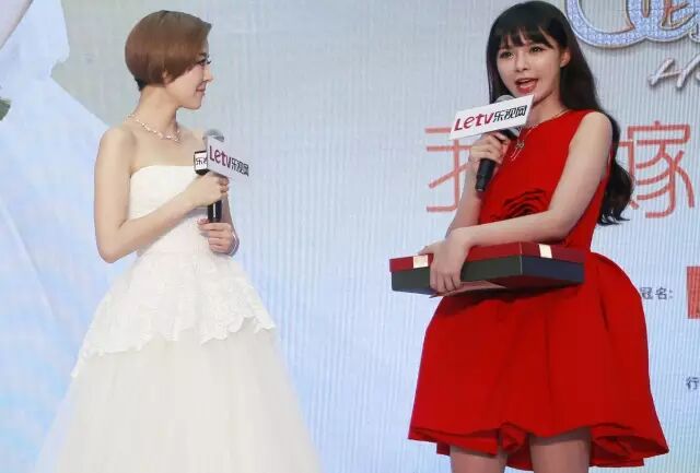 首届超女冠军安又琪在发布会上着婚纱登场,