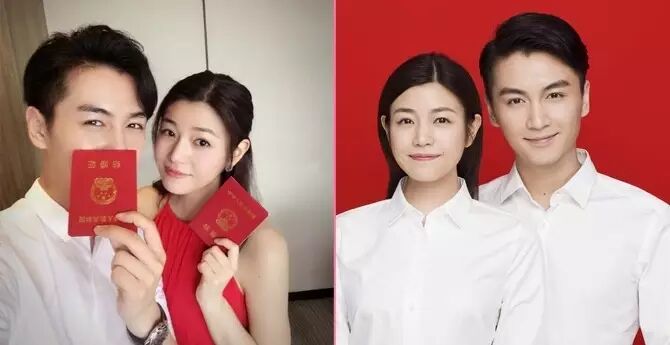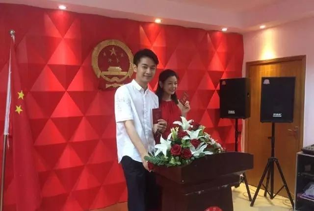 图中陈晓故意反拿结婚证,似乎在说“反正结婚啦”,29岁的陈晓和33岁的陈妍希因《神雕侠侣》结缘,2015年8月公开恋情。