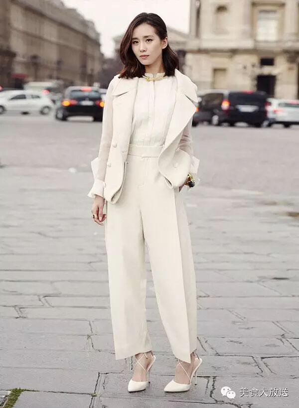 白色衬衫搭配米色款的套装,九分阔腿裤的洒脱与不羁让她的气质更加的干练,利落的服饰风格气场强大呀。