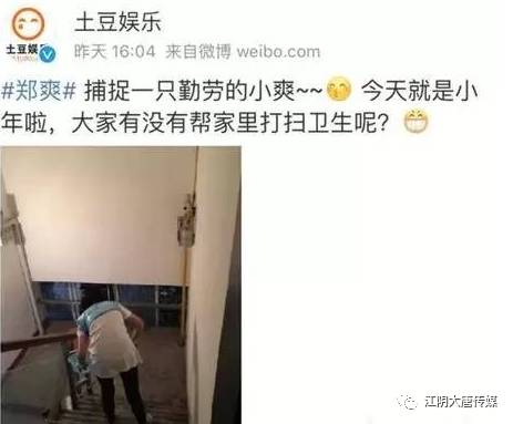 郑爽小年夜也和家人在一起,帮爸爸打扫卫生。