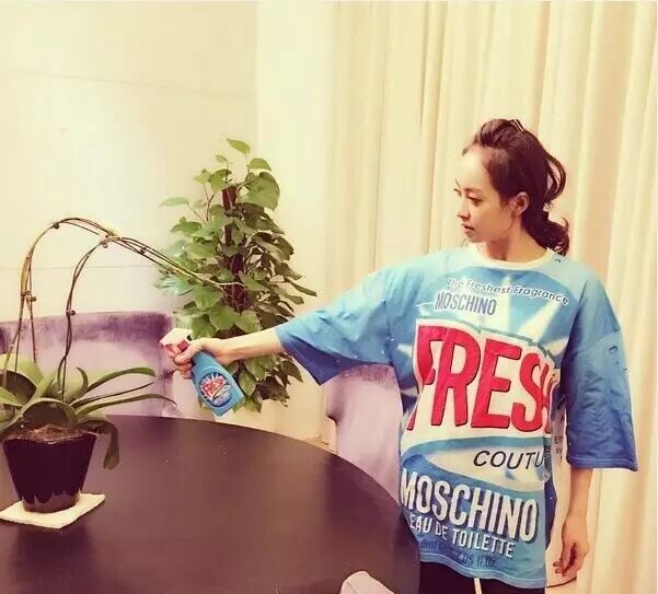 Moschino设计风格是高贵迷人、时尚幽默、俏皮为主线,比如下面这款有趣的上衣,宋茜和Angelababy都穿过,宋茜手上的还是它们家的手机壳。▼