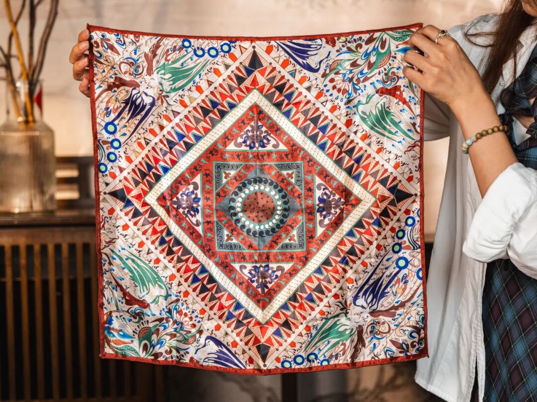 赠礼2 “锦簇”纹样方巾1枚,手感丝滑,图案超美