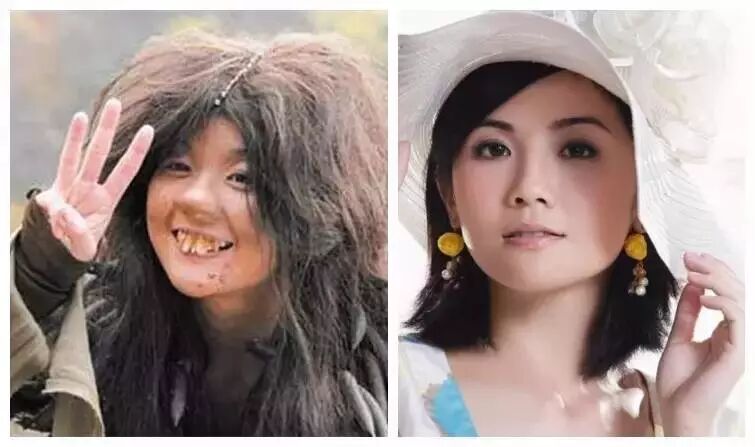 在少林足球中就更不用说了,不仅剃了光头,连原本一双引人注目的大眼睛都没保住,特地黑眼影给化成了小眼睛,并且满脸暗疮、脓包,穿的服装也是要多土有多土,这个形象把许多没作好心理准备的观众给吓得不轻。现在还有哪个女明星敢这么扮丑的。