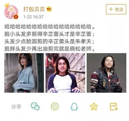 但很快就有网友道出真相,只有脸小头发多的人才能剪出“辛芷蕾头”,脸圆头发多的剪出来就是朱孝天,脸胖还爱出油的剪完就是高晓松啊!