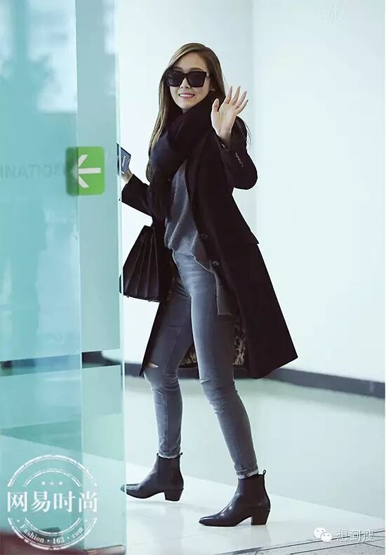 林允儿、郑秀晶和IU都比较喜欢中性的款式,用切尔西短靴和马丁靴搭配极简风格的外套。▼