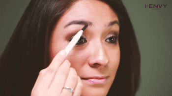 不过直接印在眉毛上不免有些僵硬死板,用眉梳整理一下,就会很自然了。