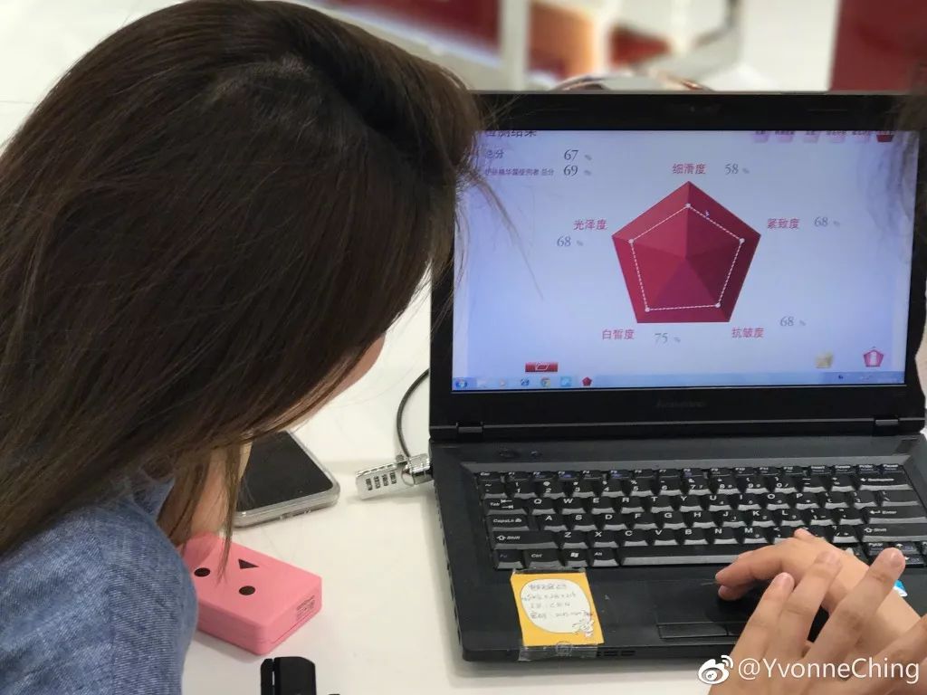 而程晓玥作为时尚博主,对护肤更是重视,会去检测自己的皮肤状态,测试结果看起来不错。
