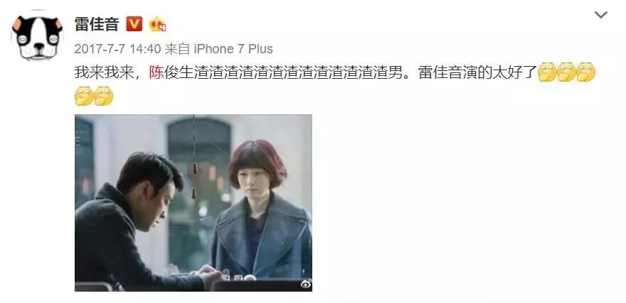 再后来,雷佳音出演了《我的前半生》负心男陈俊生,在剧中饰演“小三”的吴越在网上被人骂到关闭微博评论,雷佳音主动上前讨骂,自个儿在微博上骂自己在剧中饰演的角色太渣。