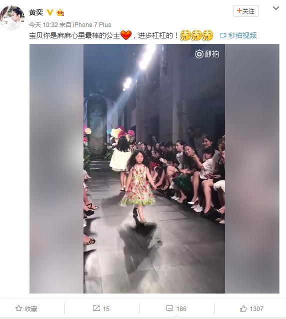 之前黄奕晒出女儿身穿碎花连衣裙,头戴王冠的T台走秀视频,小姑娘有模有样,十分大方,婉如花仙子般,受到很多观众的喜爱~
