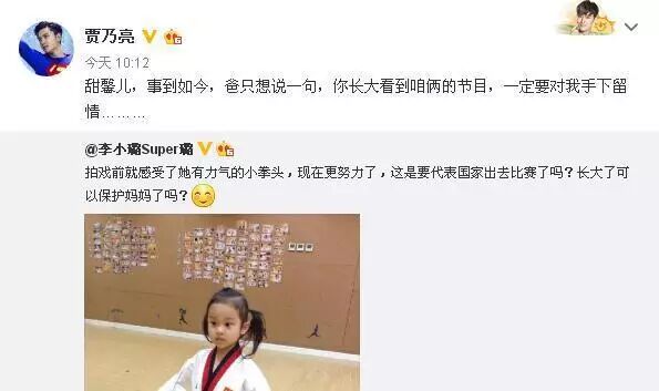 贾乃亮和李小璐忙于工作没有时间陪孩子,贾乃亮向甜馨道歉,而甜馨不仅不怪爸爸妈妈,而且还安慰他。甜馨很懂事,估计很多人都想生个像甜馨这么懂事的女儿~