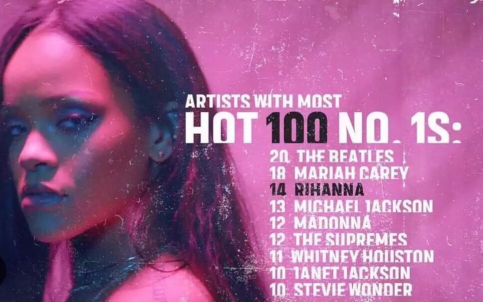 至此,她一共坐拥14首冠军单曲,超过MJ,仅次于披头士和Mariah Carey,成为史上冠单数量排名第三的歌手!