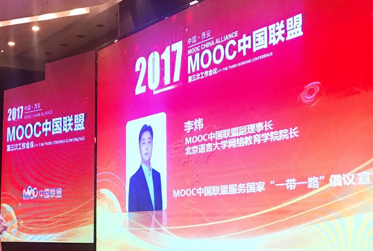 11月24日,MOOC中国联盟第三次工作会议在古都西安召开,北语网院李炜院长作为MOOC中国联盟副理事长,应邀参会并代表联盟理事会发布了《MOOC中国联盟服务国家“一带一路”倡议宣言》。